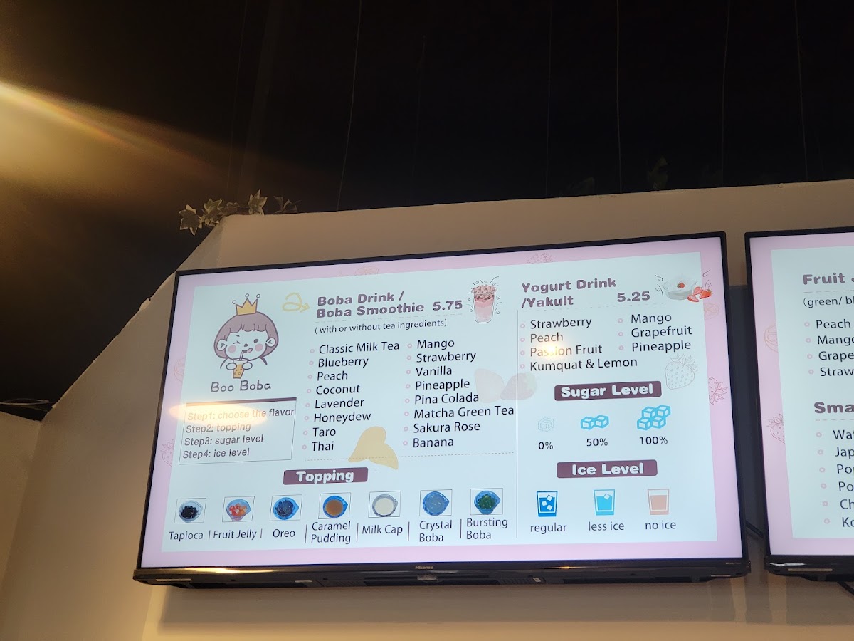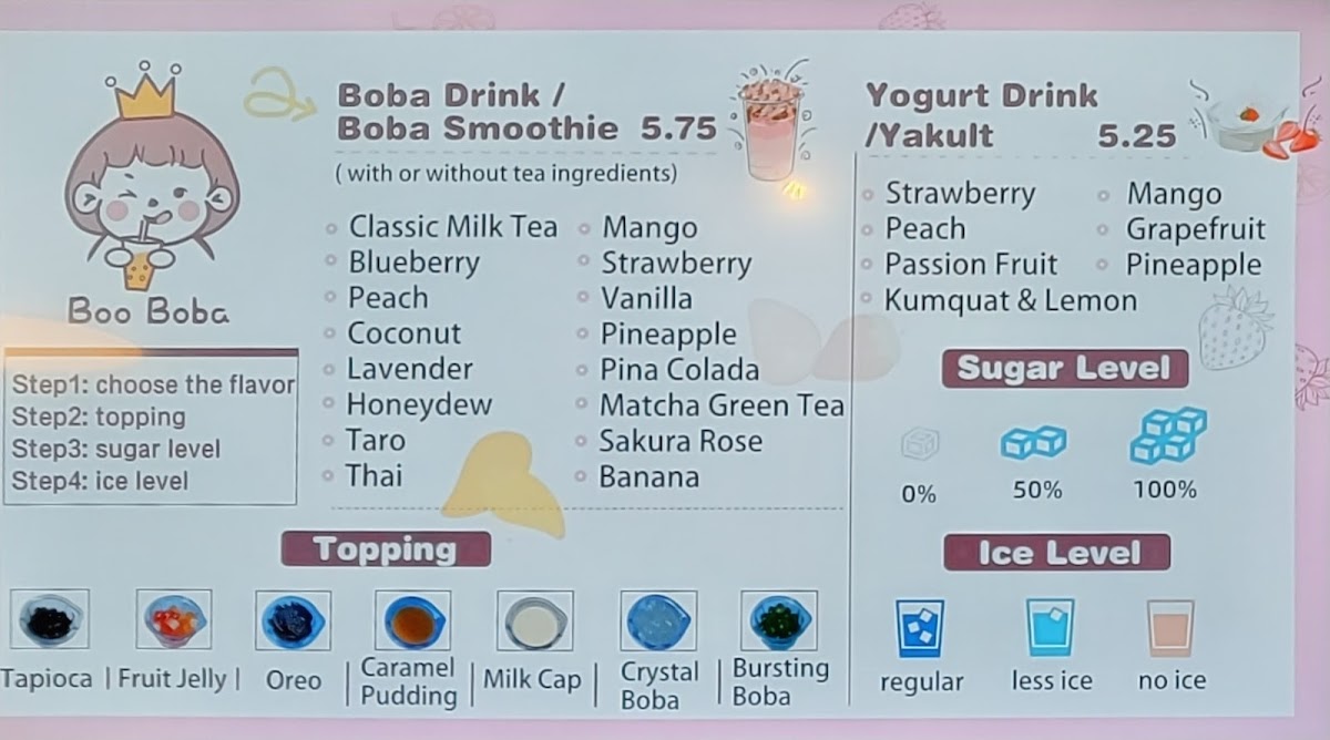 But Boo Boba Bar is not just about drinks; the food menu features enticing options like popcorn chicken and a selection of fried rice dishes, all designed to complement the boba experience. With thoughtful decor and engaging games, it creates a welcoming environment for friends and families to enjoy. Whether you're a local or just passing through, this boba bar promises an unforgettable culinary experience!